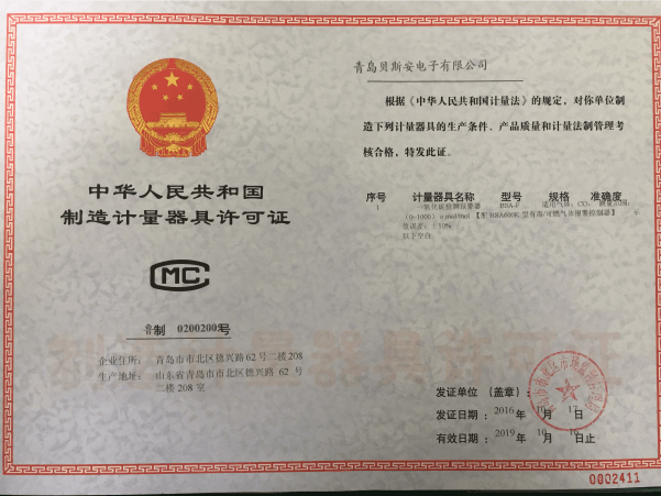 我公司是青島市具有國家質(zhì)量技術監(jiān)督部門頒發(fā)的計量器具生產(chǎn)許可證的生產(chǎn)企業(yè);獲得國家防爆電氣產(chǎn)品質(zhì)量監(jiān)督檢驗中心頒發(fā)的防爆合格證;獲得國家公安部消防產(chǎn)品合格評定中心頒發(fā)的消防產(chǎn)品形式認可證書。